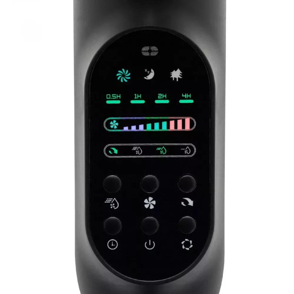 A készülék elektronikus fóliagombokkal vagy távirányítóval is irányítható, amelyhez 2 darab 1,5 V-os (AAA) elem szükséges (nem tartozék). A kikapcsolásidőzítő 0,5 és 7,5 óra között állítható, így nemcsak kényelmes, de energiatakarékos működést is biztosít. A kerekekkel felszerelt talprésznek köszönhetően a ventilátor könnyedén mozgatható, így egyszerűen áthelyezhető egyik helyiségből a másikba.
