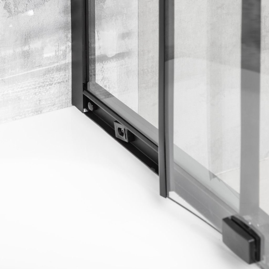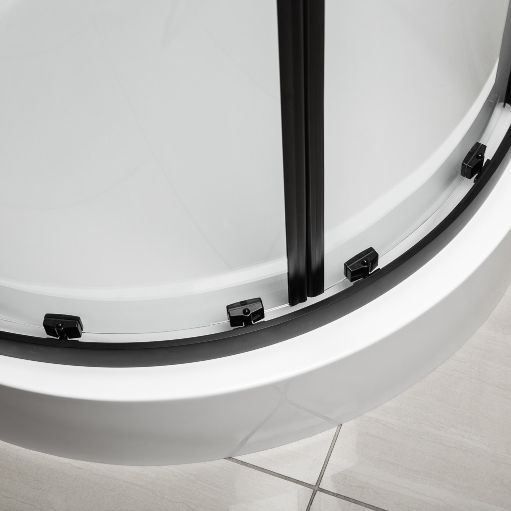 A fekete bevonatú, masszív alumínium profilok nedvességállóak és tökéletesen illeszkednek a többi fürdőszobai berendezéshez. A szett tartalmaz egy 16 cm magas, fehér akril zuhanytálcát , amely kényelmes fürdést és egyszerű tisztítást biztosít.