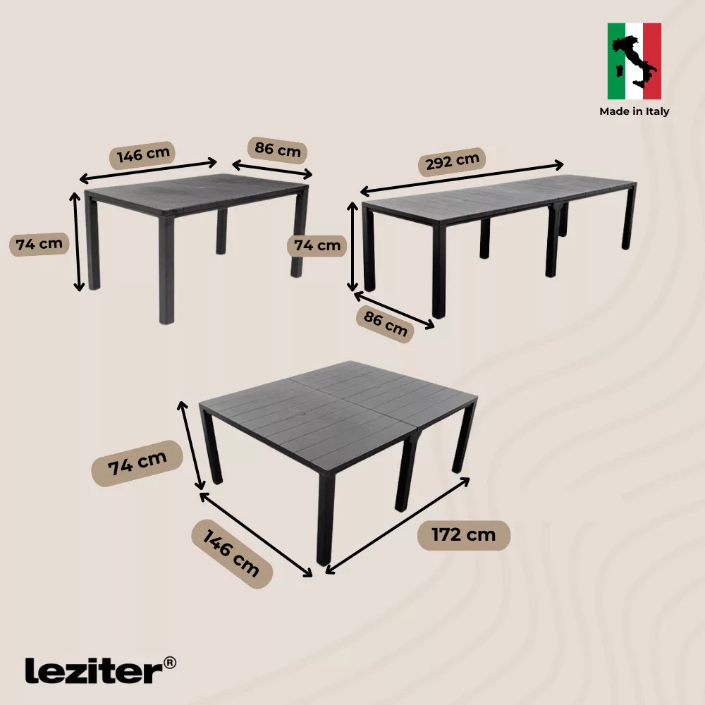 A legtöbb kerti asztal fix méretű – vagy túl kicsi, vagy túl nagy. A Tulsa dupla műanyag kerti asztal azonban három méretben is használható, így mindig a helyzethez tudod igazítani:
