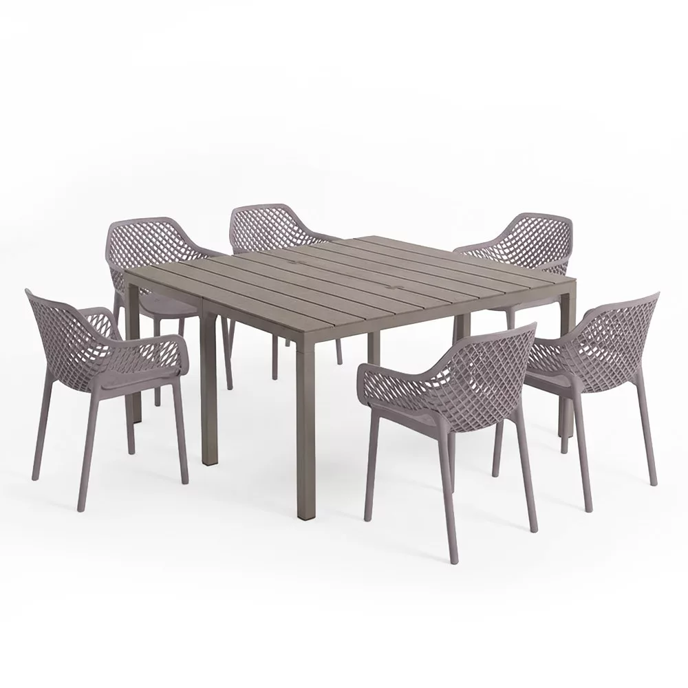 A Luno 6+1 kerti bútor garnitúra cappuccino színben sokoldalú és hosszú távon megbízható választás kültéri használatra. A bővíthető asztal és a rakásolható székek kombinációja lehetővé teszi, hogy a bútor szett könnyen alkalmazkodjon a mindennapi használathoz és a nagyobb összejövetelekhez is.