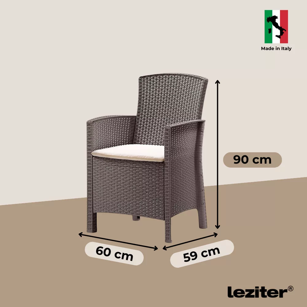 A bútorokat könnyen meg tudod tisztítani vízzel és mosogatószerrel, így akár pár perc alatt újra makulátlanná varázsolhatod a vendégek érkezése előtt, hiszen anyagának és egyszerű tisztíthatóságának köszönhetően nem kell órákat eltöltened vele. A fotelekhez járó párnákat is könnyedén ki lehet tisztítani. A bútor időtálló választás, jól tűri az időjárási viszontagságokat.