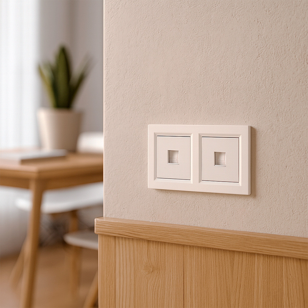 A Nova szerelvénycsalád minden eleme úgy lett kialakítva, hogy funkcióban és dizájnban is tökéletesen illeszkedjen egymáshoz. A dupla UTP aljzat tökéletes kiegészítője lehet a Nova kapcsolóknak, földelt dugaljaknak, TV- vagy USB aljzatoknak – így a teljes elektromos és adatátviteli rendszered egységes megjelenést és professzionális működést nyújt.