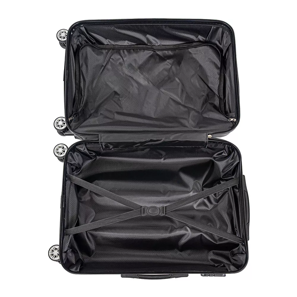 - Kerekek: Közepes és kabin bőrönd – 4 db dupla kerék, 360°-ban forgatható