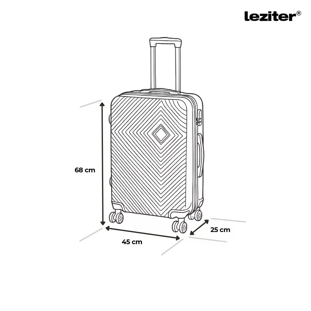 – Közepes bőrönd: 68 × 45 × 25 cm | 60 liter | 2,65 kg