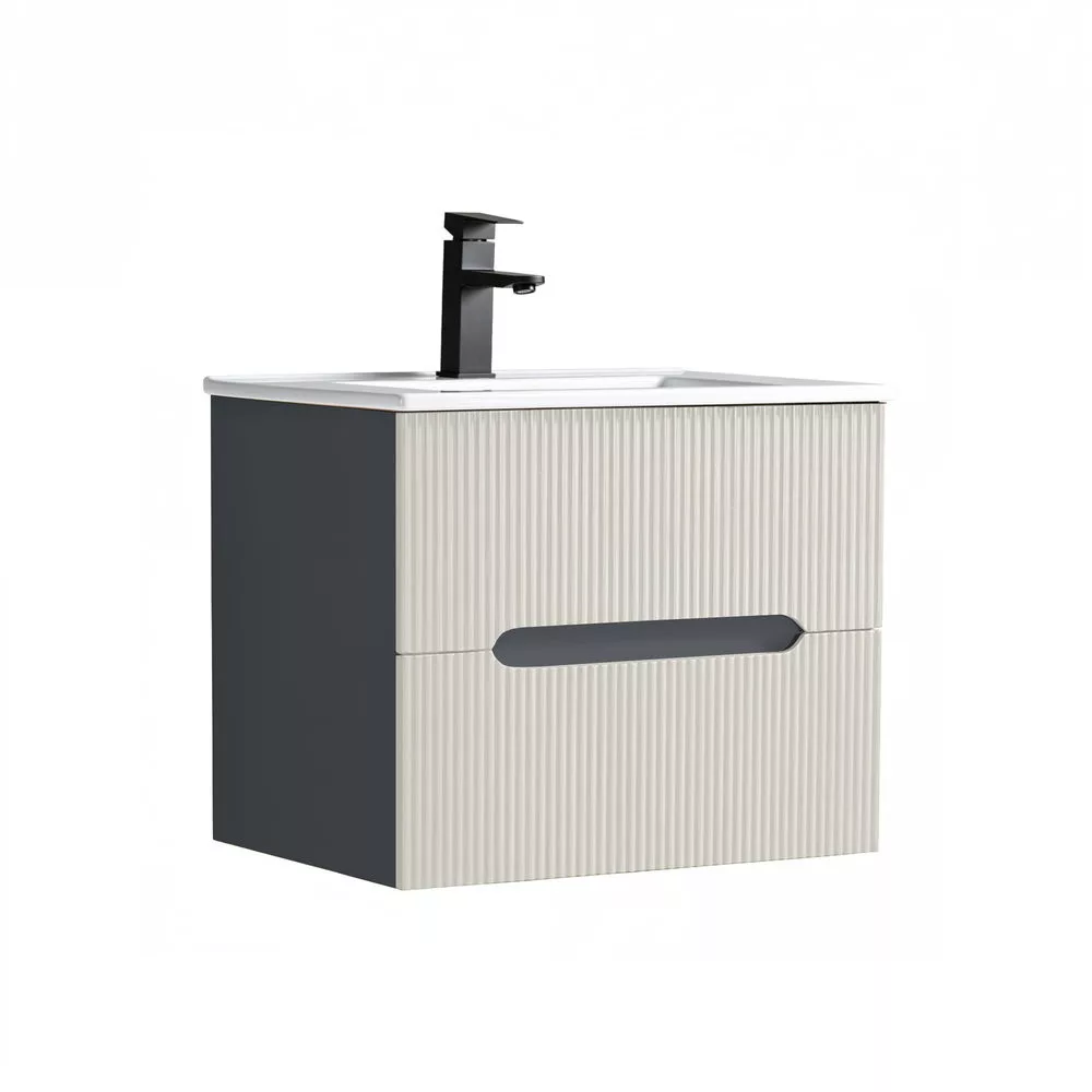 Leziter Trent Fürdőszobabútor 60 cm kerámia mosdóval (2 fiókos) Antracit szürke - Fehér