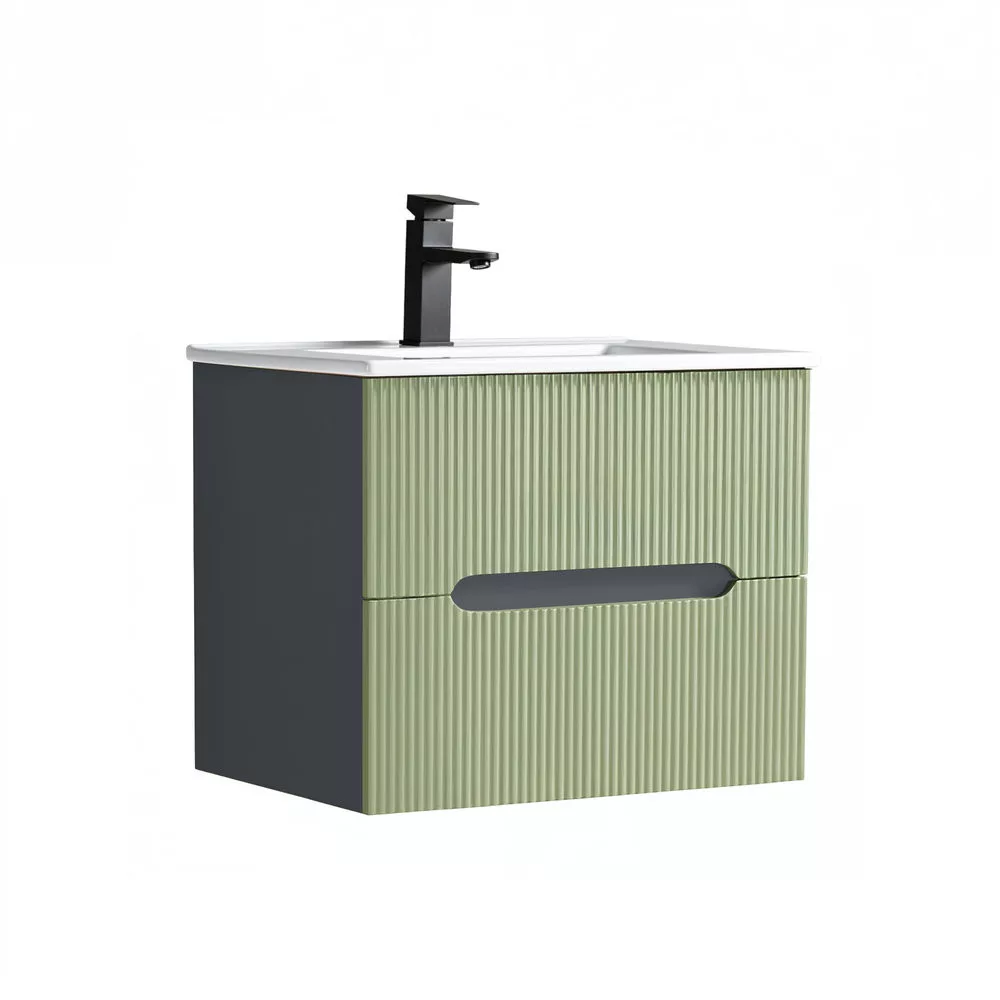 Leziter Trent Fürdőszobabútor 60 cm kerámia mosdóval (2 fiókos) Antracit szürke - Pisztáciazöld