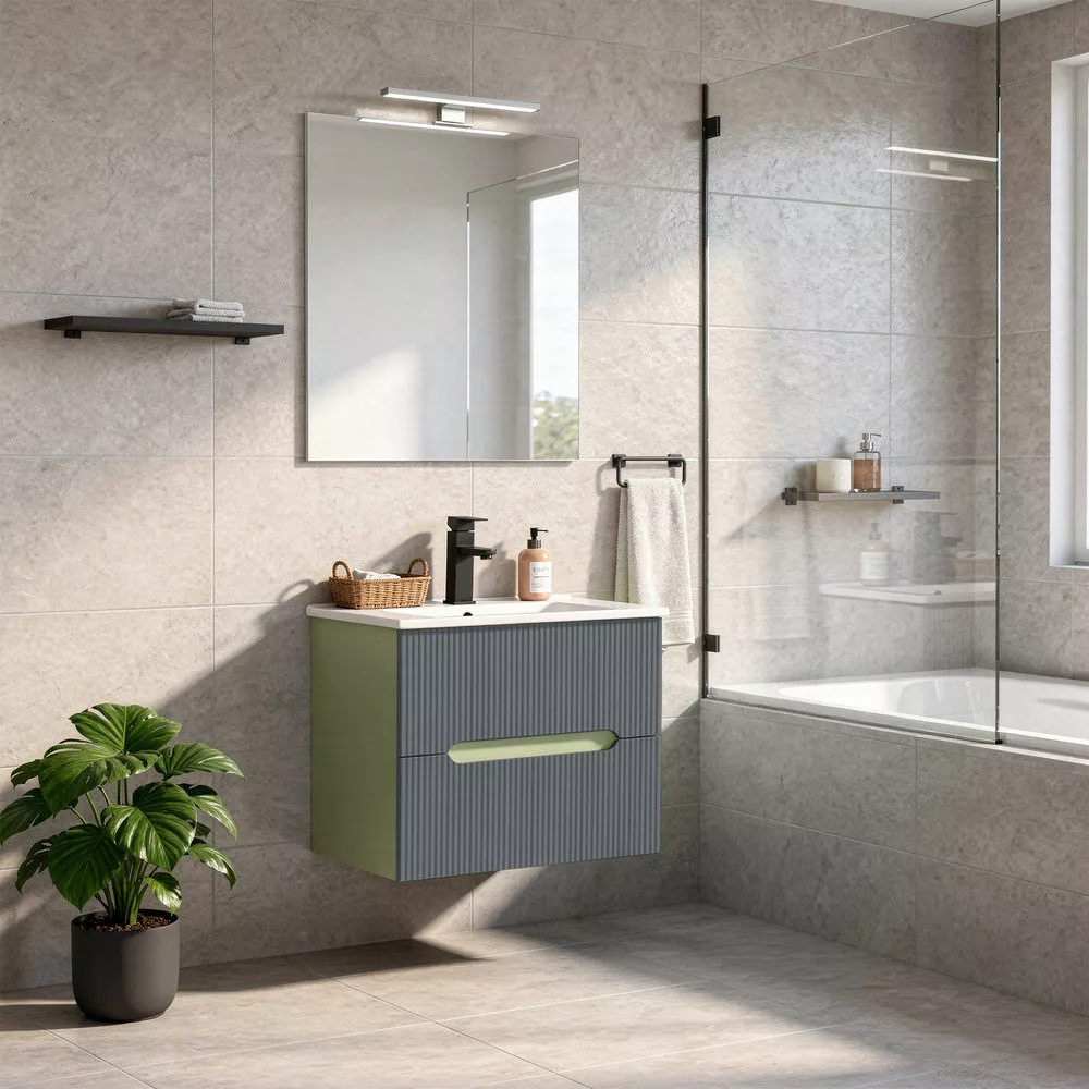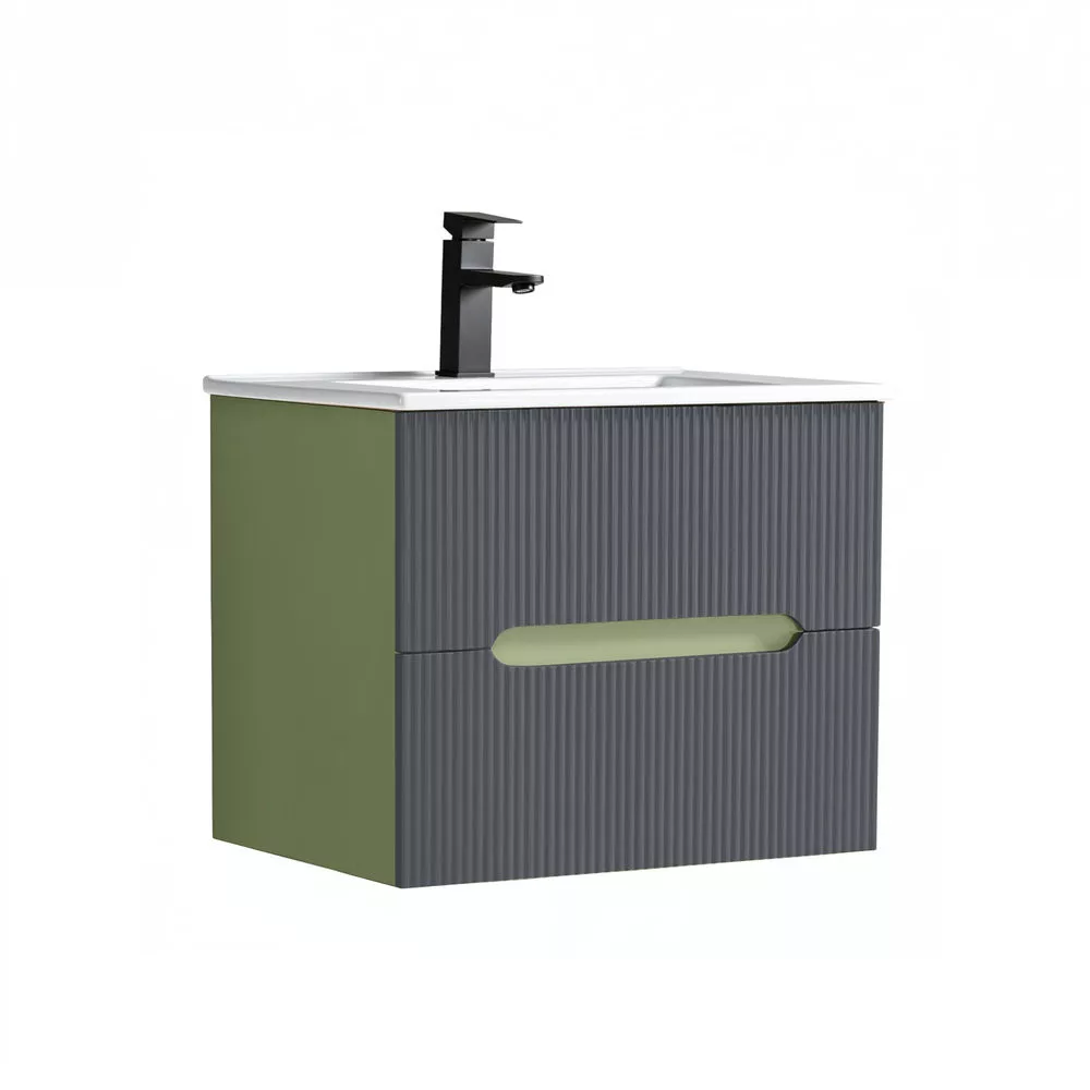 Leziter Trent Fürdőszobabútor 60 cm kerámia mosdóval (2 fiókos) Pisztáciazöld - Antracit szürke