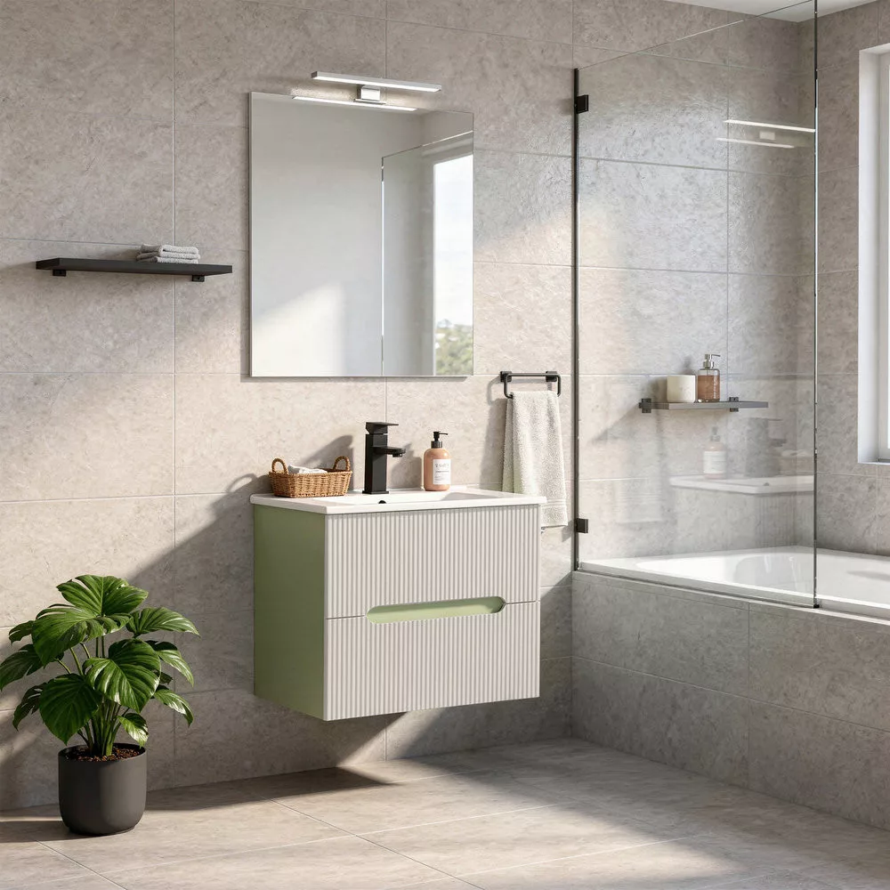 Leziter Trent Fürdőszobabútor 60 cm kerámia mosdóval (2 fiókos) Pisztáciazöld - Fehér