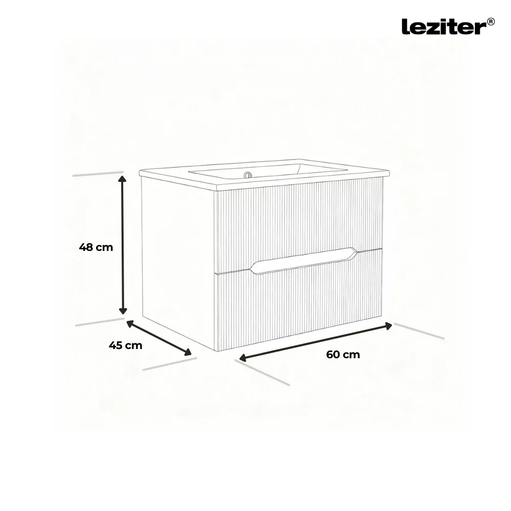 A Leziter Trent fürdőszobabútor harmonikusan ötvözi a látványt és a praktikumot. A bordázott előlap letisztult, modern karaktert ad, miközben az integrált fogantyú kényelmes használatot tesz lehetővé. A fali rögzítés könnyed megjelenést teremt, a padló takarítása pedig gyorsabbá válik.