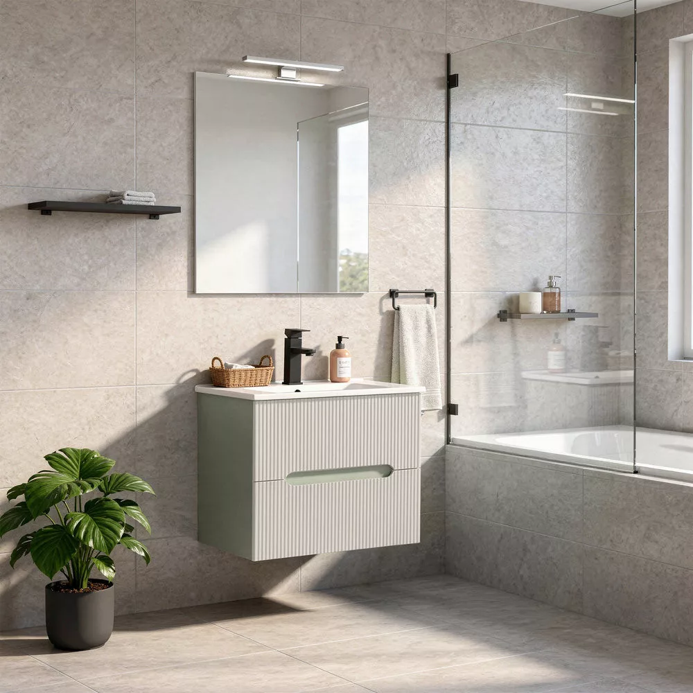 A Leziter Trent fürdőszobabútor harmonikusan ötvözi a látványt és a praktikumot. A bordázott előlap letisztult, modern karaktert ad, miközben az integrált fogantyú kényelmes használatot tesz lehetővé. A fali rögzítés könnyed megjelenést teremt, a padló takarítása pedig gyorsabbá válik.