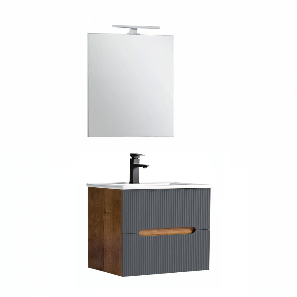 Leziter Trent Fürdőszobabútor 60 cm kerámia mosdóval (2 fiókos) tükörrel Sunset tölgy - Antracit szürke