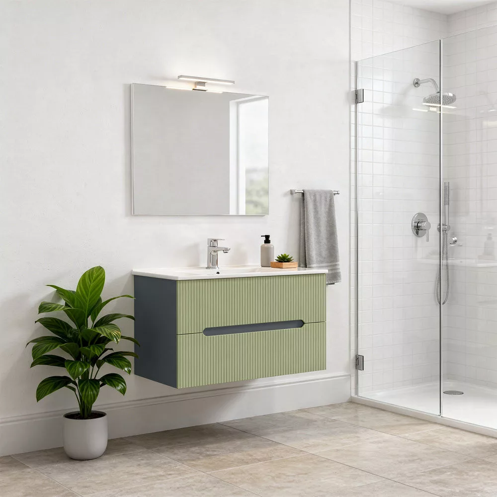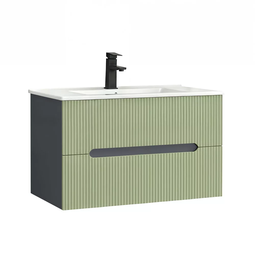 Leziter Trent Fürdőszobabútor 80 cm kerámia mosdóval (2 fiókos) Antracit szürke - Pisztáciazöld