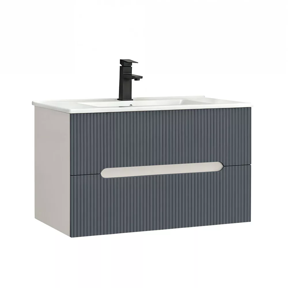 Leziter Trent Fürdőszobabútor 80 cm kerámia mosdóval (2 fiókos) Fehér - Antracit szürke