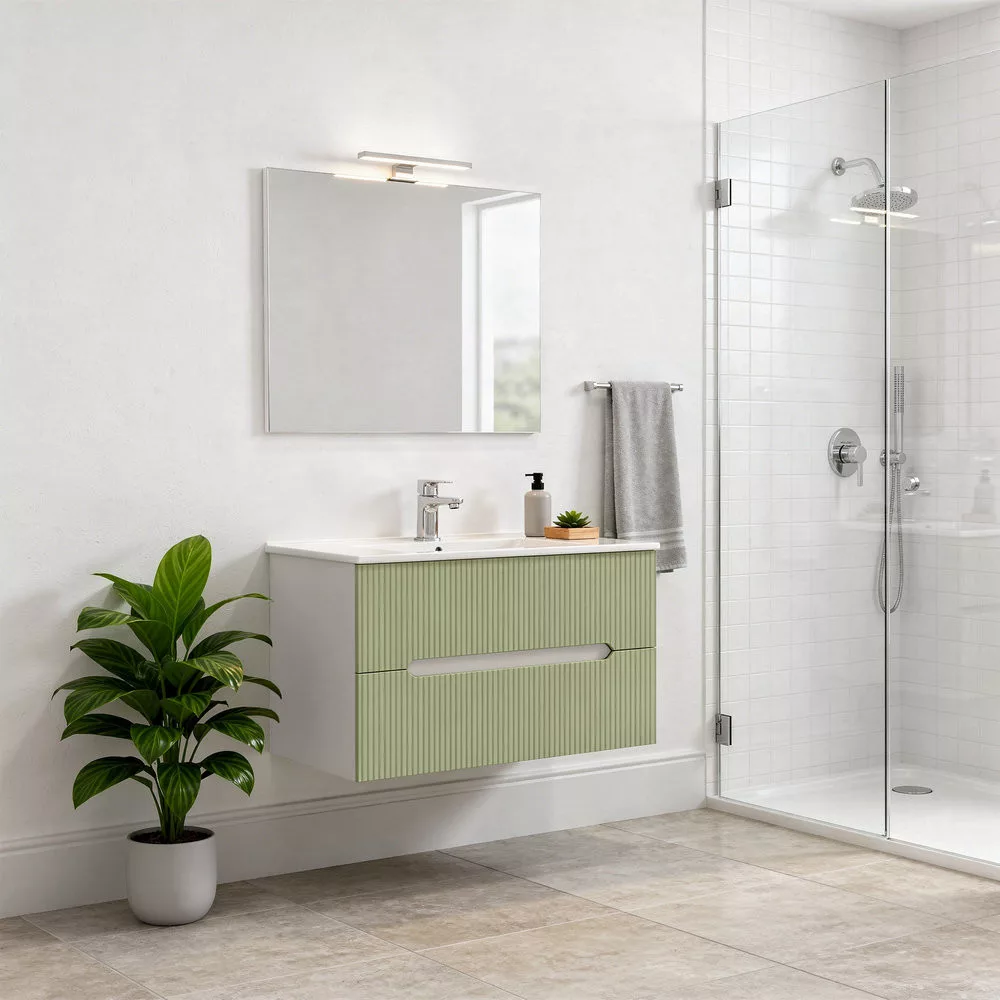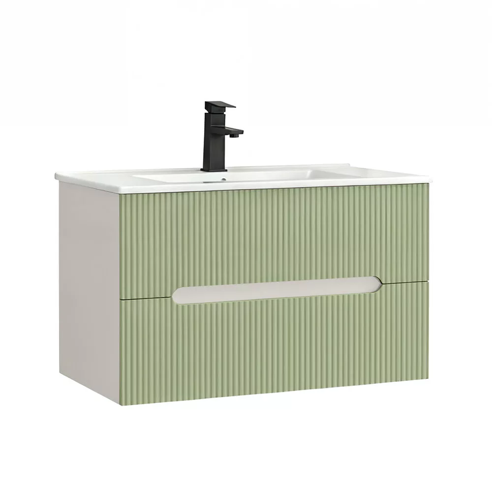 Leziter Trent Fürdőszobabútor 80 cm kerámia mosdóval (2 fiókos) Fehér - Pisztáciazöld