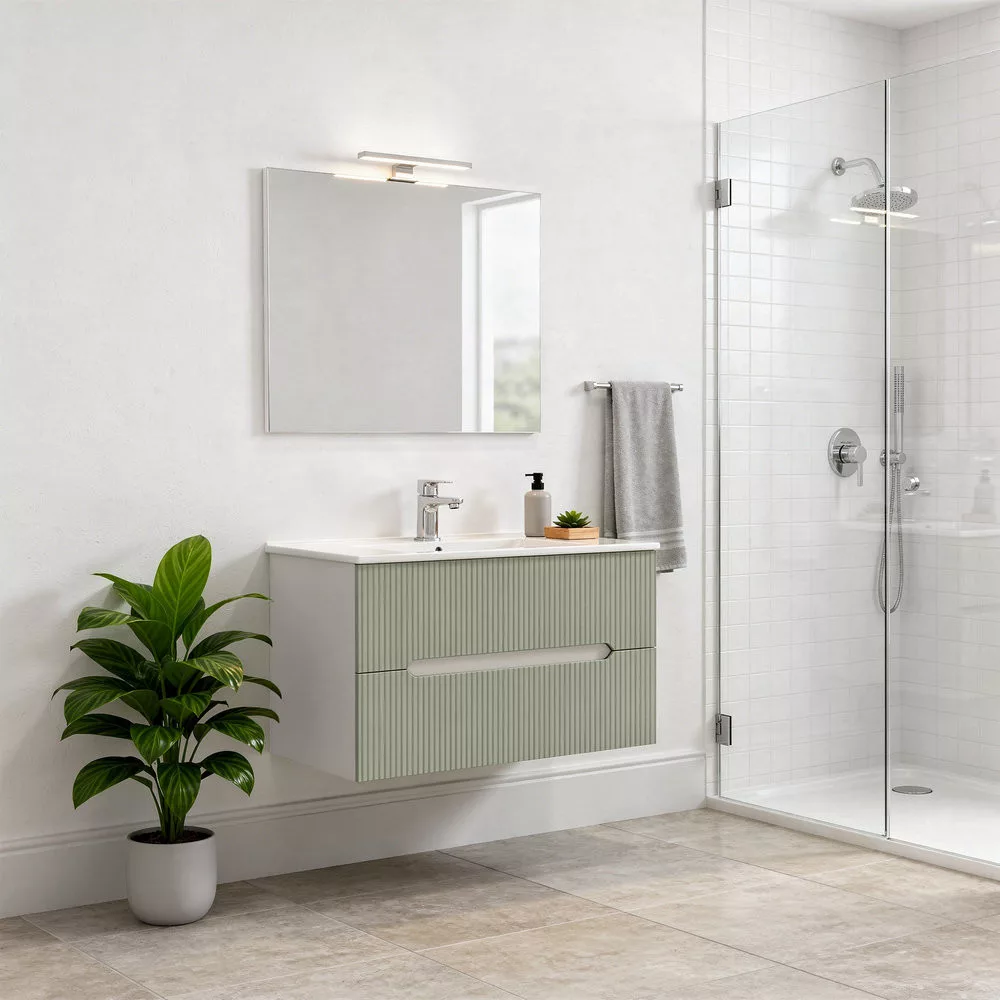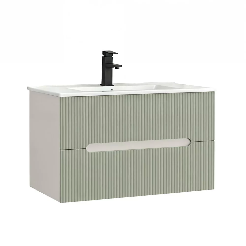 Leziter Trent Fürdőszobabútor 80 cm kerámia mosdóval (2 fiókos) Fehér - Olivazöld
