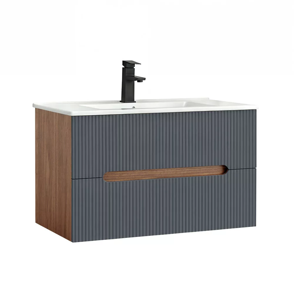Leziter Trent Fürdőszobabútor 80 cm kerámia mosdóval (2 fiókos) Sunset tölgy - Antracit szürke