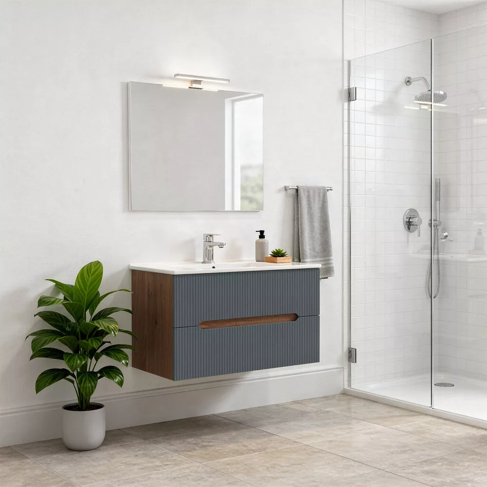 A Leziter Trent fürdőszobabútor harmonikusan ötvözi a látványt és a praktikumot. A bordázott előlap letisztult, modern karaktert ad, miközben az integrált fogantyú kényelmes használatot tesz lehetővé. A fali rögzítés könnyed megjelenést teremt, a padló takarítása pedig gyorsabbá válik.