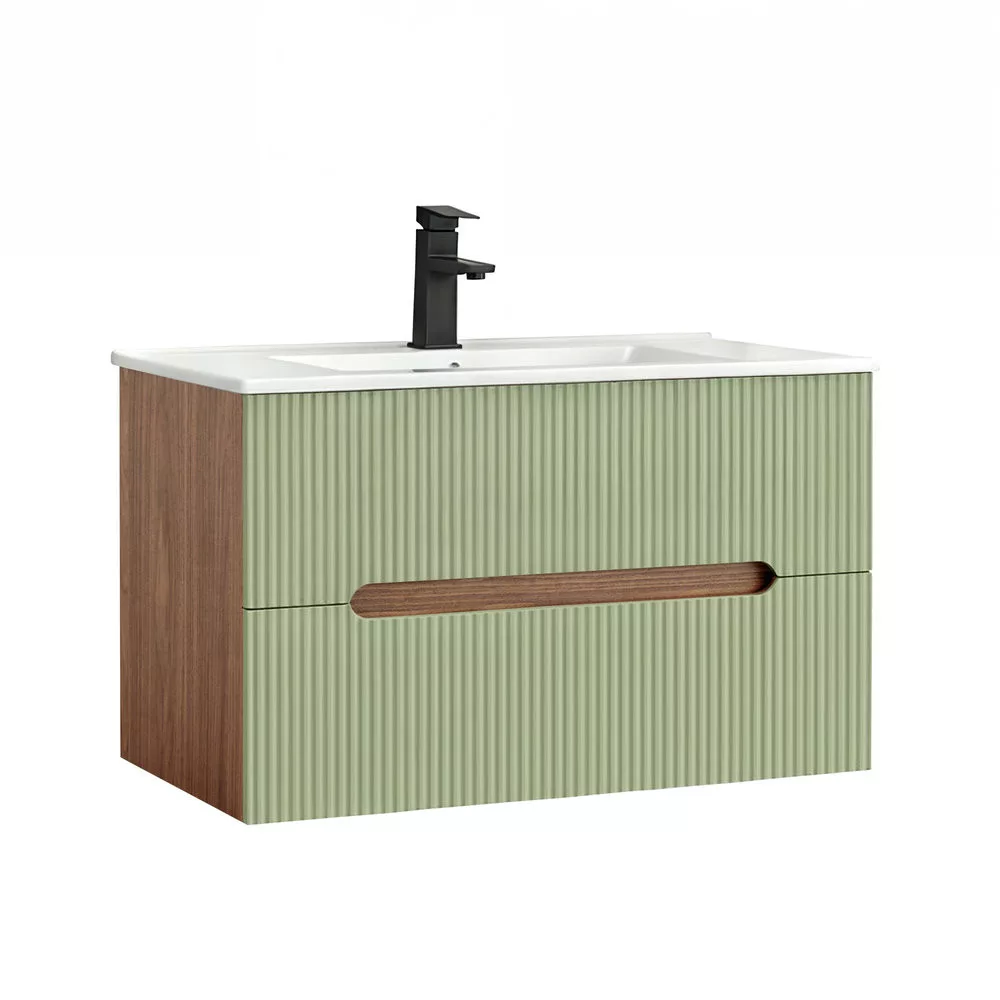 Leziter Trent Fürdőszobabútor 80 cm kerámia mosdóval (2 fiókos) Sunset tölgy - Pisztáciazöld