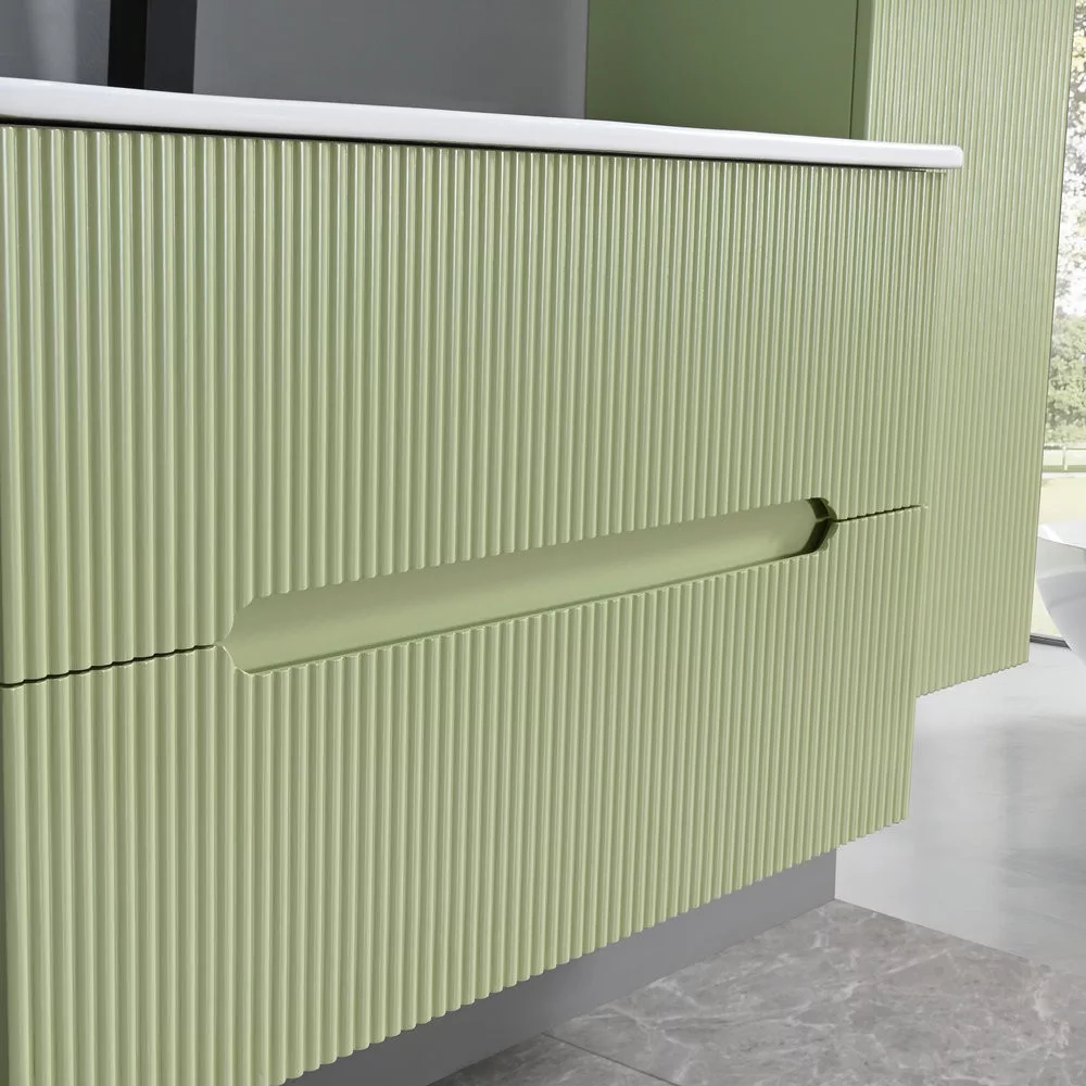 A Leziter Trent fürdőszobabútor harmonikusan ötvözi a látványt és a praktikumot. A bordázott előlap letisztult, modern karaktert ad, miközben az integrált fogantyú kényelmes használatot tesz lehetővé. A fali rögzítés könnyed megjelenést teremt, a padló takarítása pedig gyorsabbá válik.