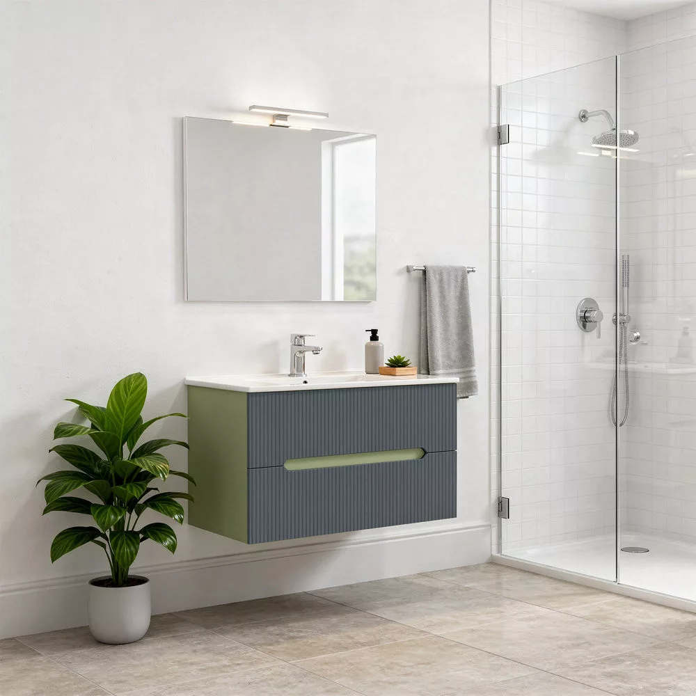 Leziter Trent Fürdőszobabútor 80 cm kerámia mosdóval (2 fiókos) Pisztáciazöld - Antracit szürke