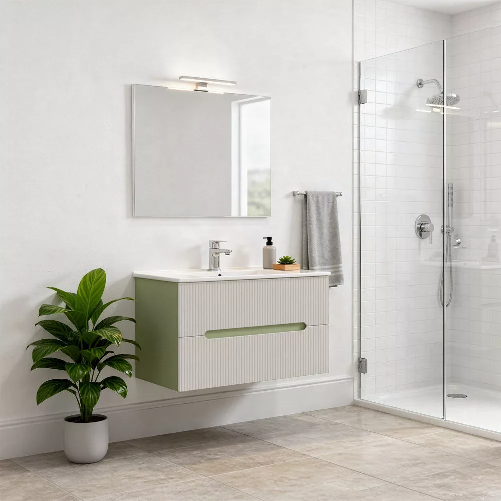 Leziter Trent Fürdőszobabútor 80 cm kerámia mosdóval (2 fiókos) Pisztáciazöld - Fehér