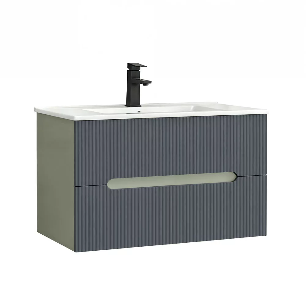Leziter Trent Fürdőszobabútor 80 cm kerámia mosdóval (2 fiókos) Olivazöld - Antracit szürke