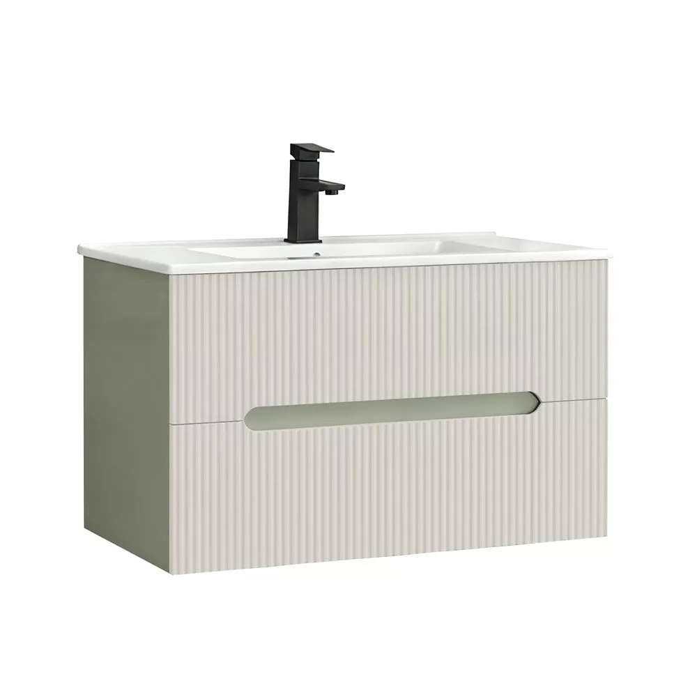 Leziter Trent Fürdőszobabútor 80 cm kerámia mosdóval (2 fiókos) Olivazöld - Fehér