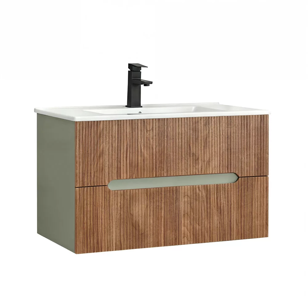 Leziter Trent Fürdőszobabútor 80 cm kerámia mosdóval (2 fiókos) Olivazöld - Sunset tölgy