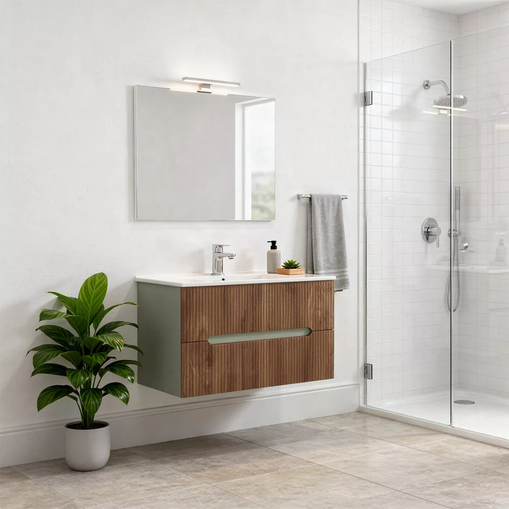 A Leziter Trent fürdőszobabútor harmonikusan ötvözi a látványt és a praktikumot. A bordázott előlap letisztult, modern karaktert ad, miközben az integrált fogantyú kényelmes használatot tesz lehetővé. A fali rögzítés könnyed megjelenést teremt, a padló takarítása pedig gyorsabbá válik.