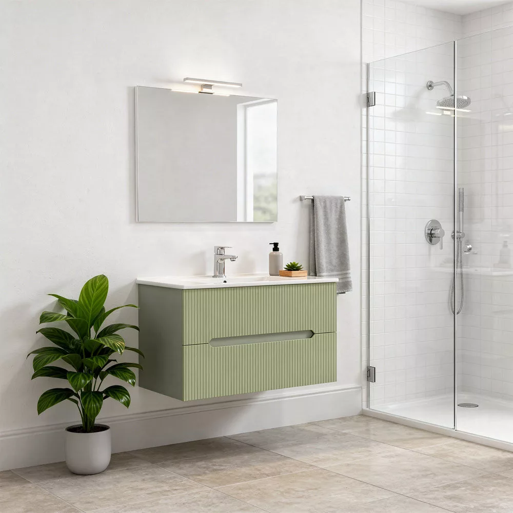 Leziter Trent Fürdőszobabútor 80 cm kerámia mosdóval (2 fiókos) Olivazöld - Pisztáciazöld